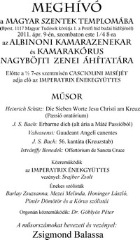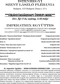 2011. április 17. 11:00 (vasárnap) - Istenhegyi Szent László Plébánia, 1125 Budapest, Diana u. 15.