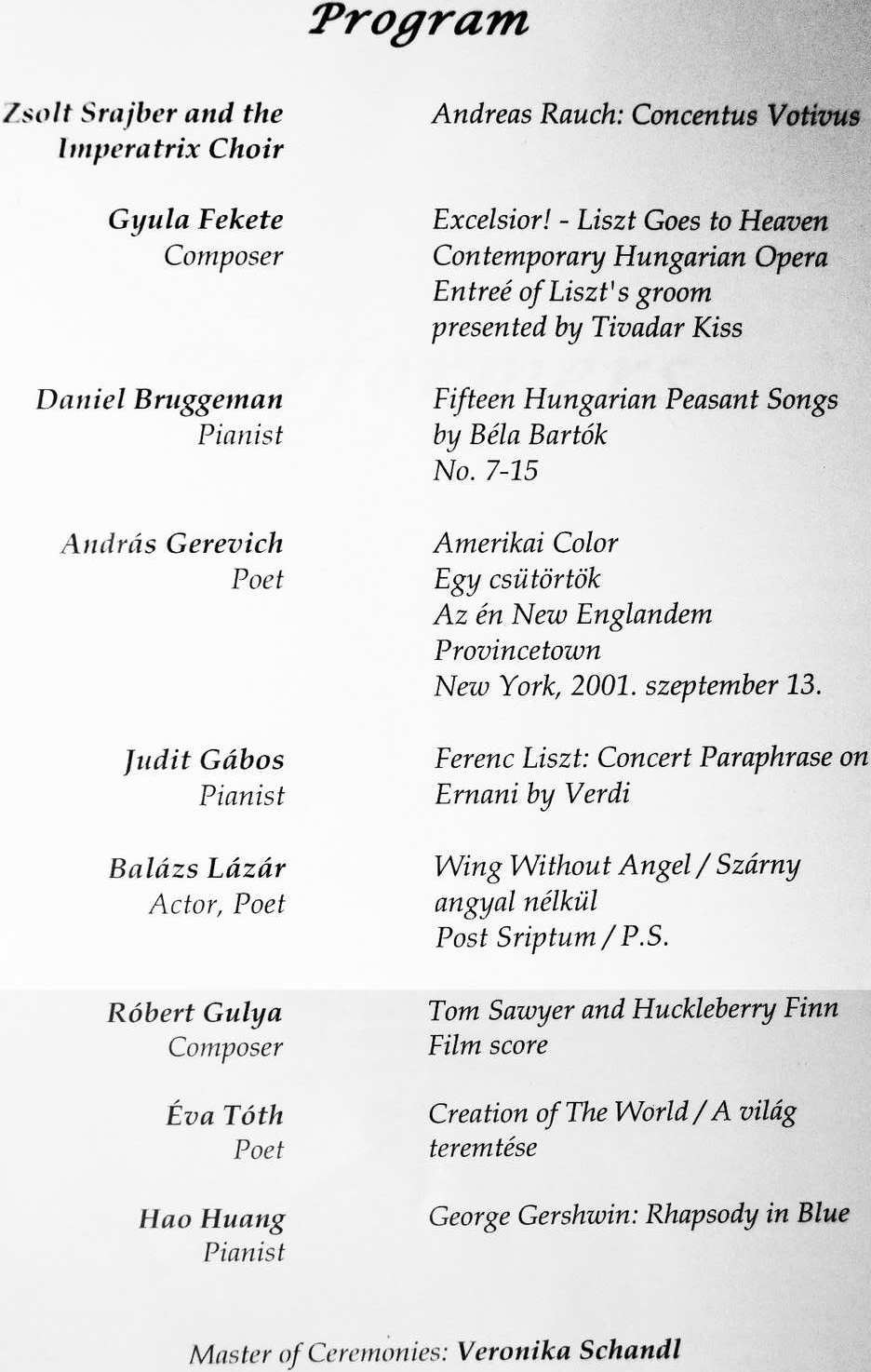 No 34) A Magyar Fulbright Bizottság 20. évfordulóját ünneplő „Fulbright - Committed to the Future” című konferenciájának gálahangversenye.