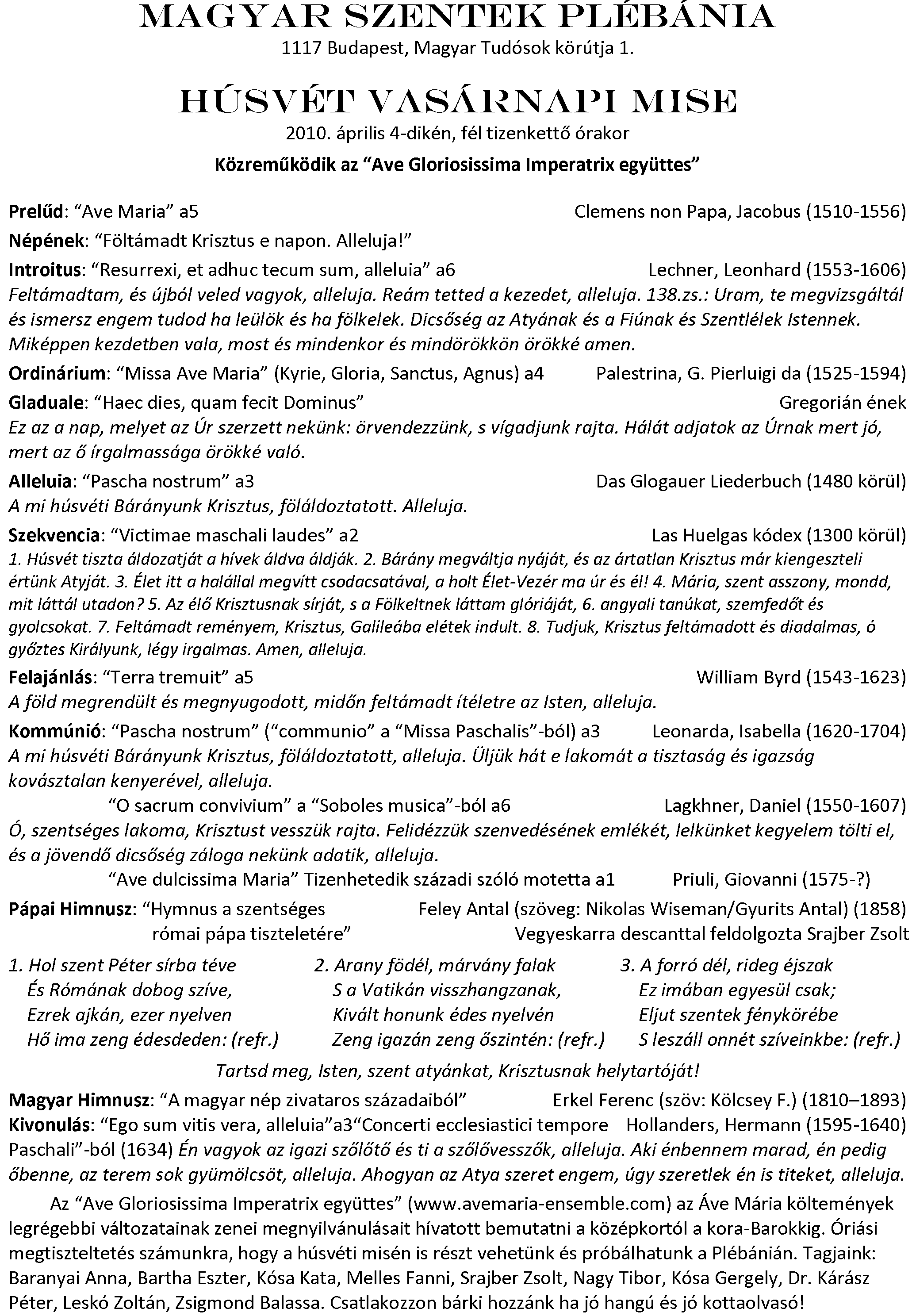 2010. Április 4. 11:30 (vasárnap) - Magyar Szentek Temploma, 1117 Budapest, Magyar Tudósok körútja 1. (Petőfi híd budai hídfőtől délre 150m)