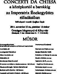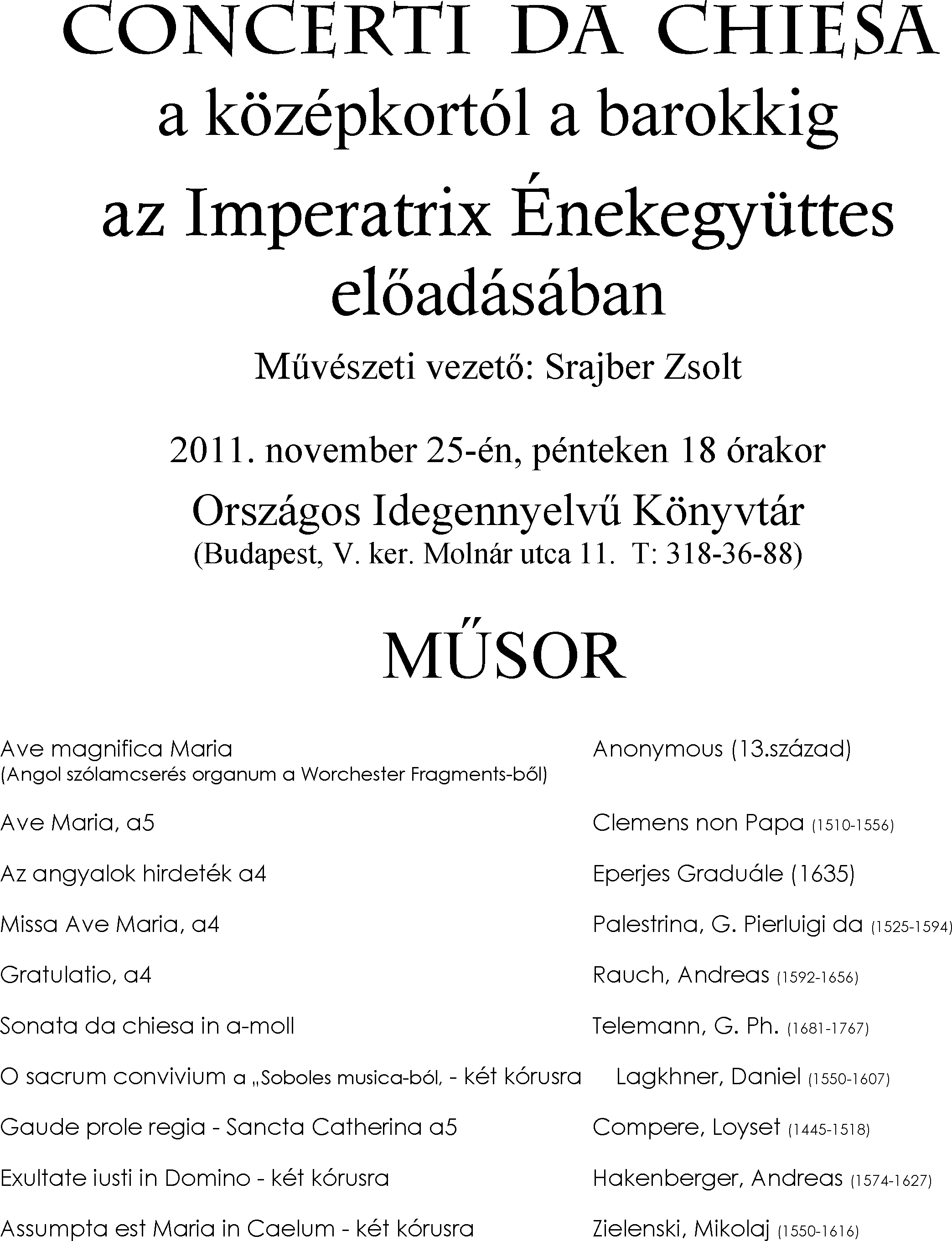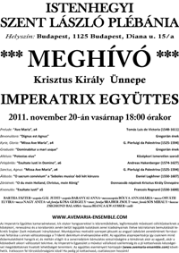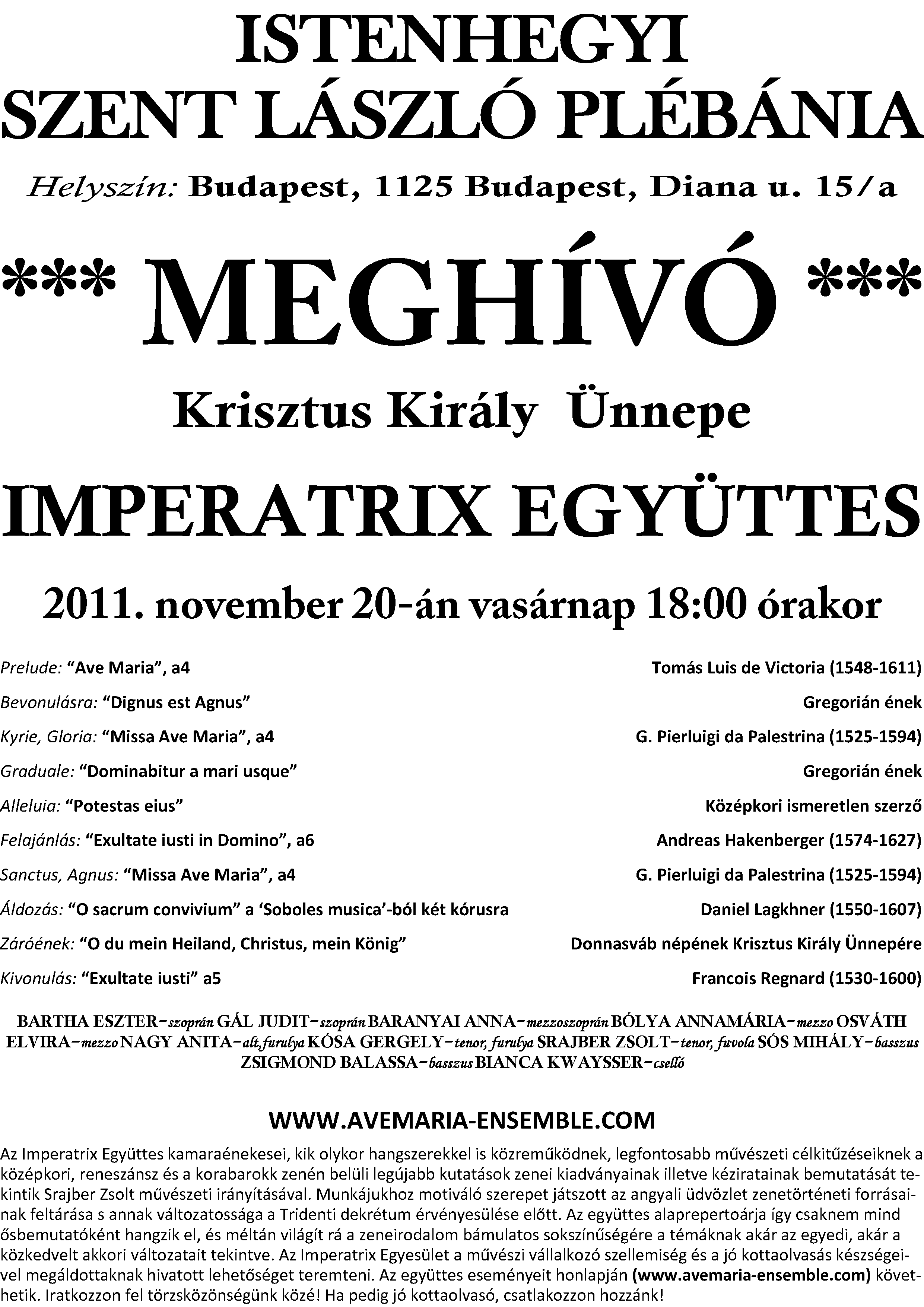 2011. november 20. 18:00 (vasárnap) - Istenhegyi Szent László Plébánia, 1125 Budapest, Diana u. 15.