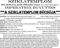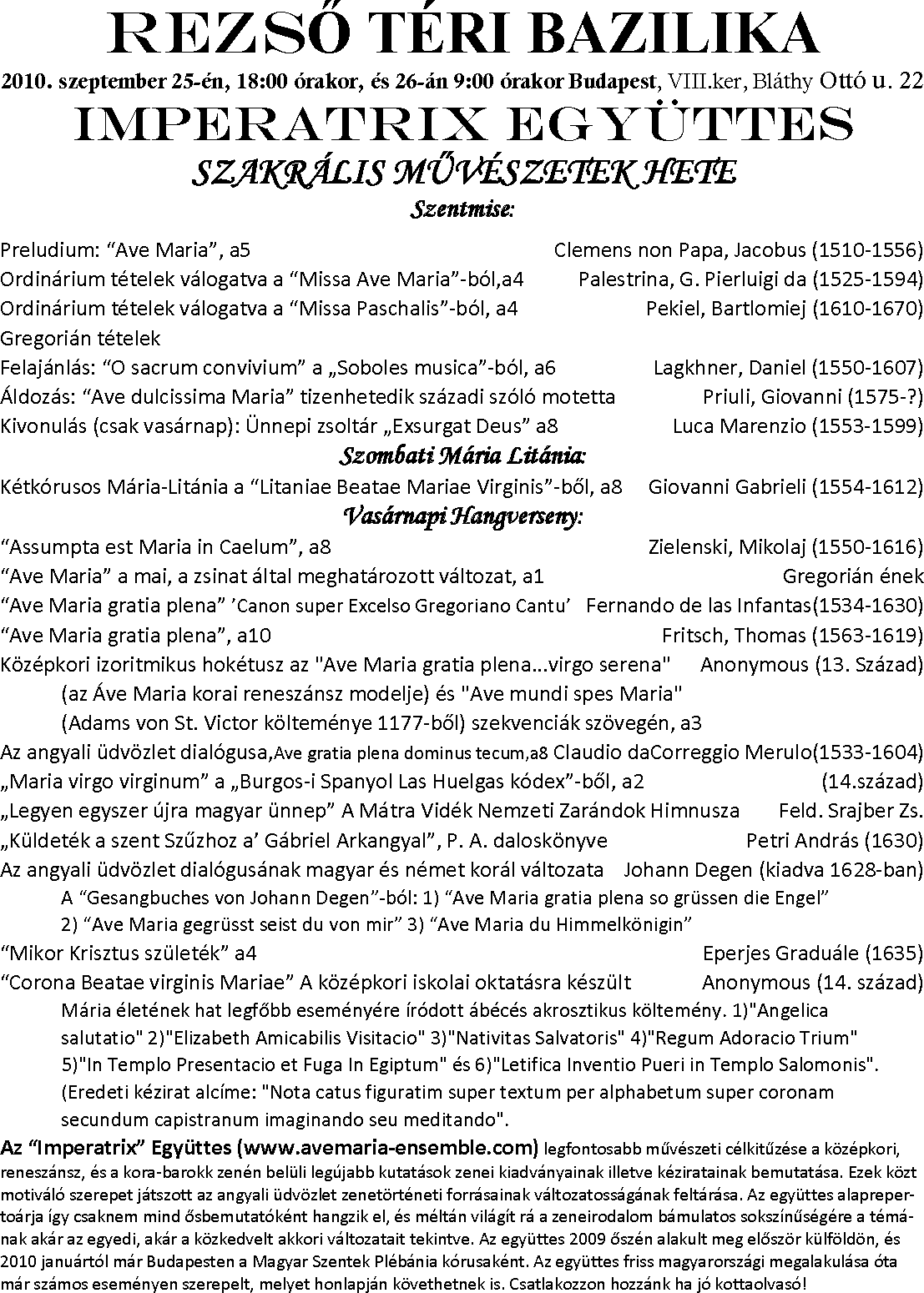 2010. Szeptember 25. 18:00 (szombat) & 2010. Szeptember 26. 9:00 (vasárnap) - Rezső Téri Bazilika, VIII. kerület, Budapest.
