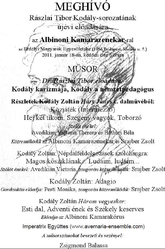 No 15) Rászlai Tibor Kodály-sorozatának újévi előadása: “Kodály karizmája, Kodály, a Nemzetpedagógus”.
