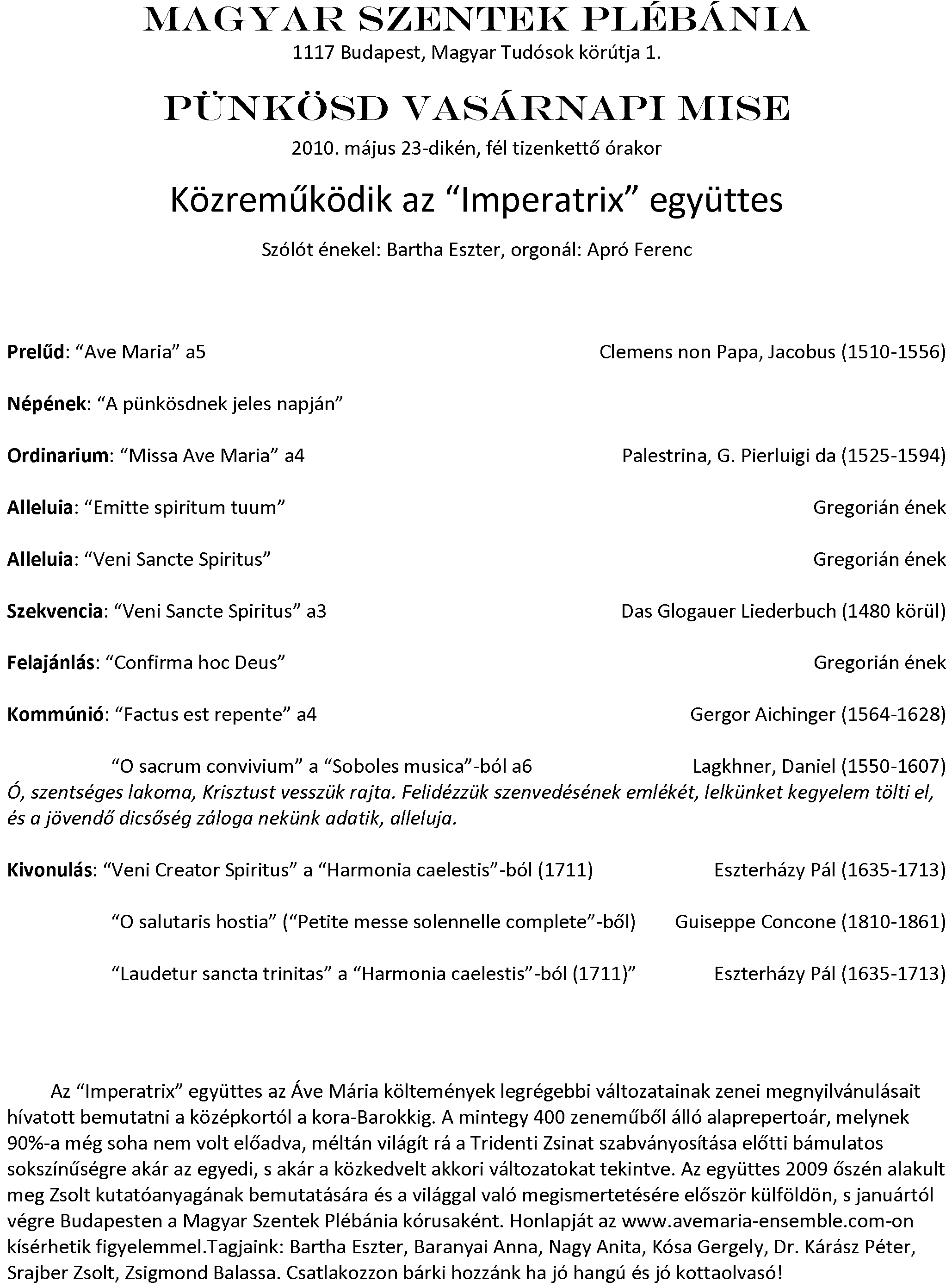 2010. Május 23. 11:30 (vasárnap) - Magyar Szentek Temploma, 1117 Budapest, Magyar Tudósok körútja 1. (Petőfi híd budai hídfőtől délre 150m)