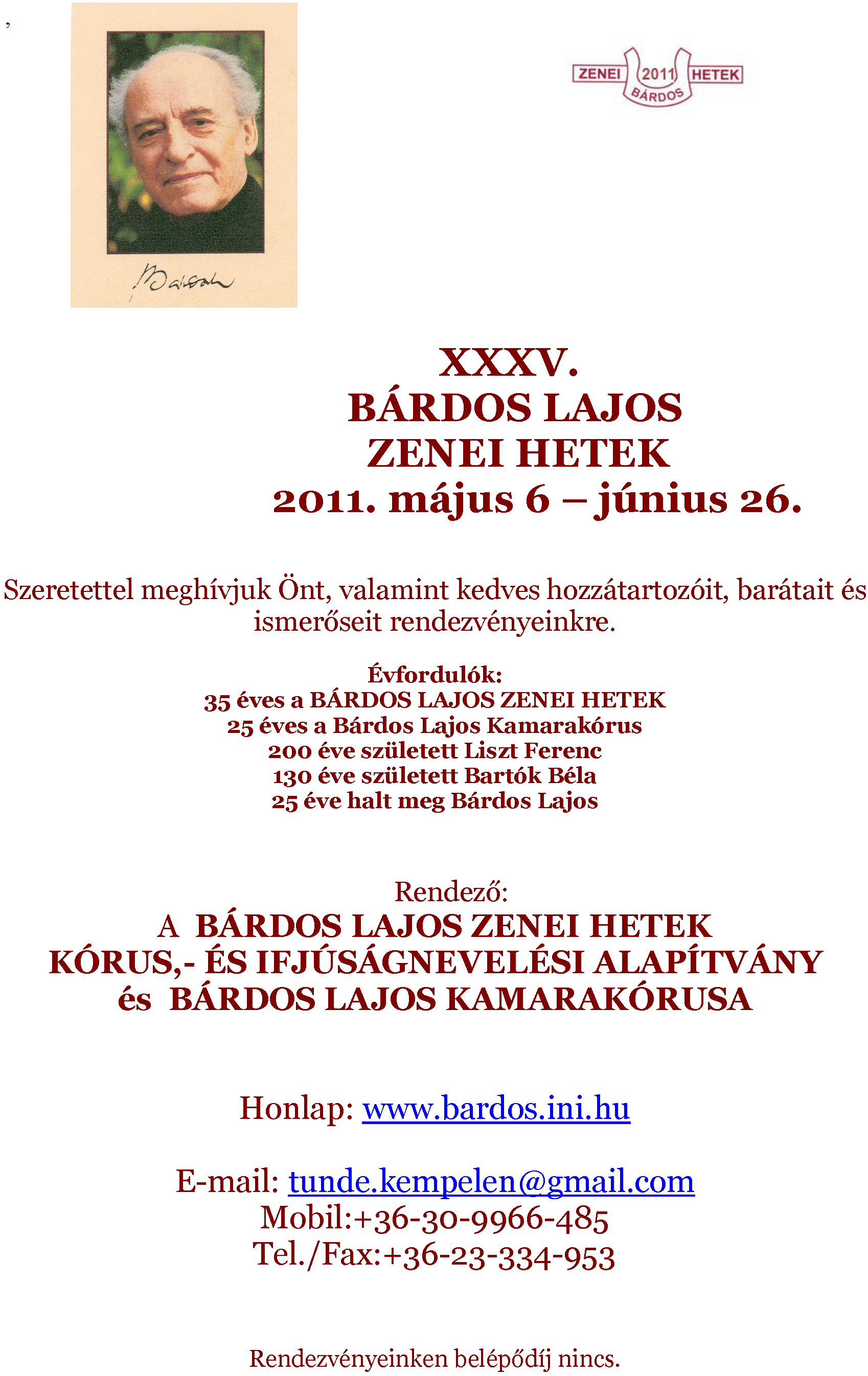No 3) XXXIV. Bárdos Lajos Zenei Heteknek “Musica Sacra” hangversenye